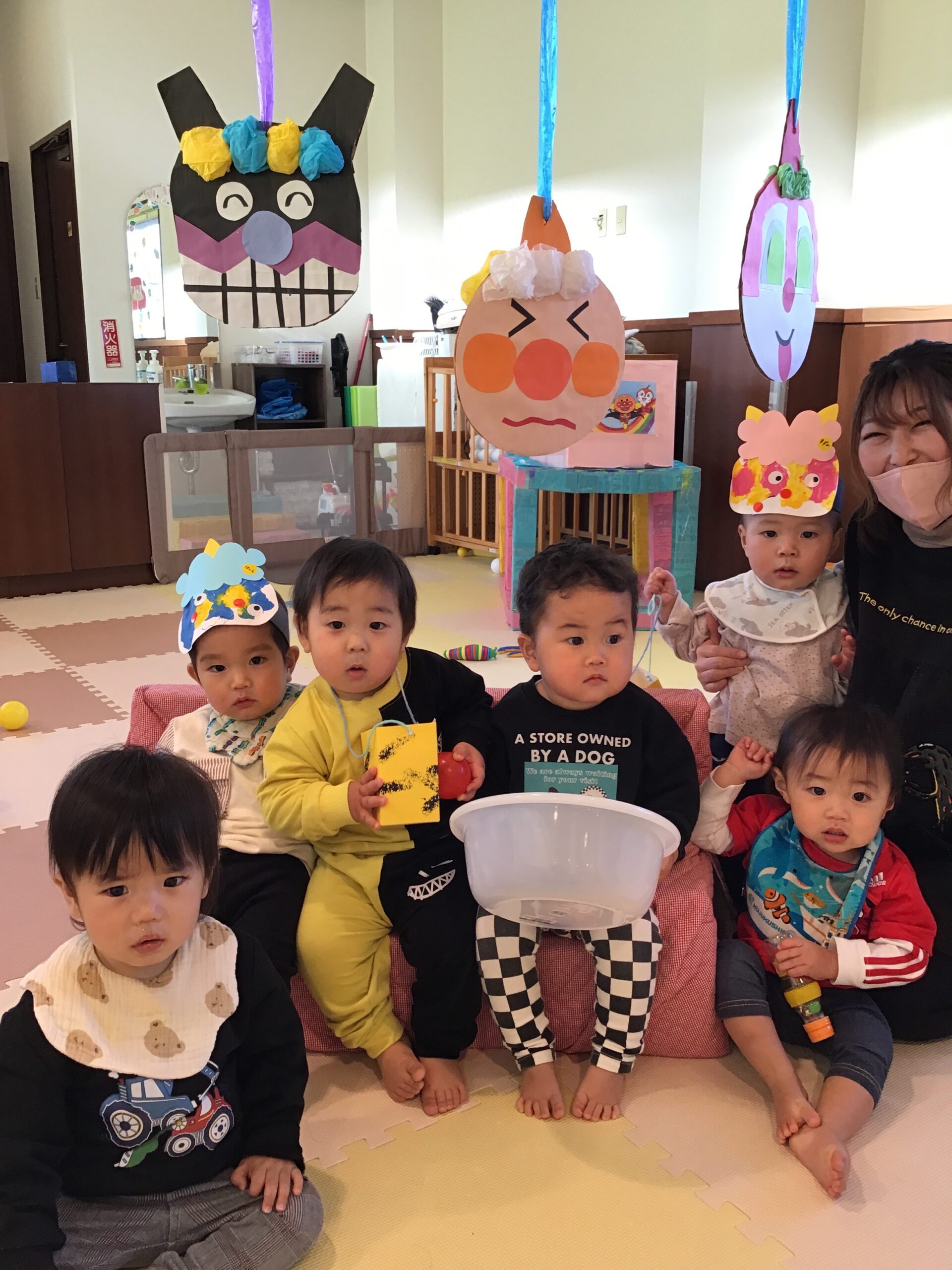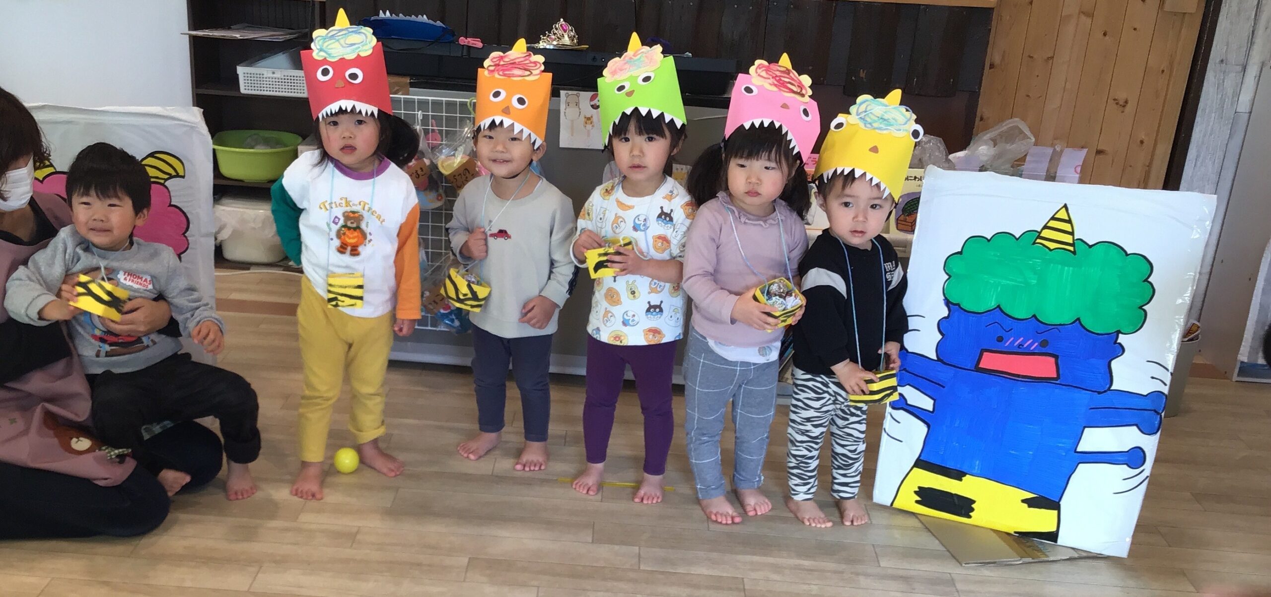 小さい子ども達に動く鬼はこわいもの・・・ みんなが楽しく豆まきできるようこわ~い鬼さんは登場しません(/・ω・)/