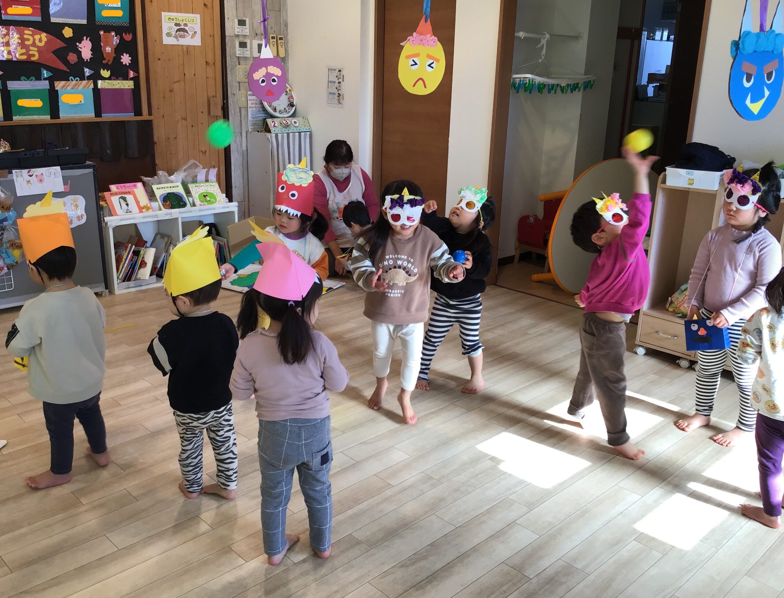 • 色んなおにさんがいるから、みんなで豆まきだよ~おには~そと~