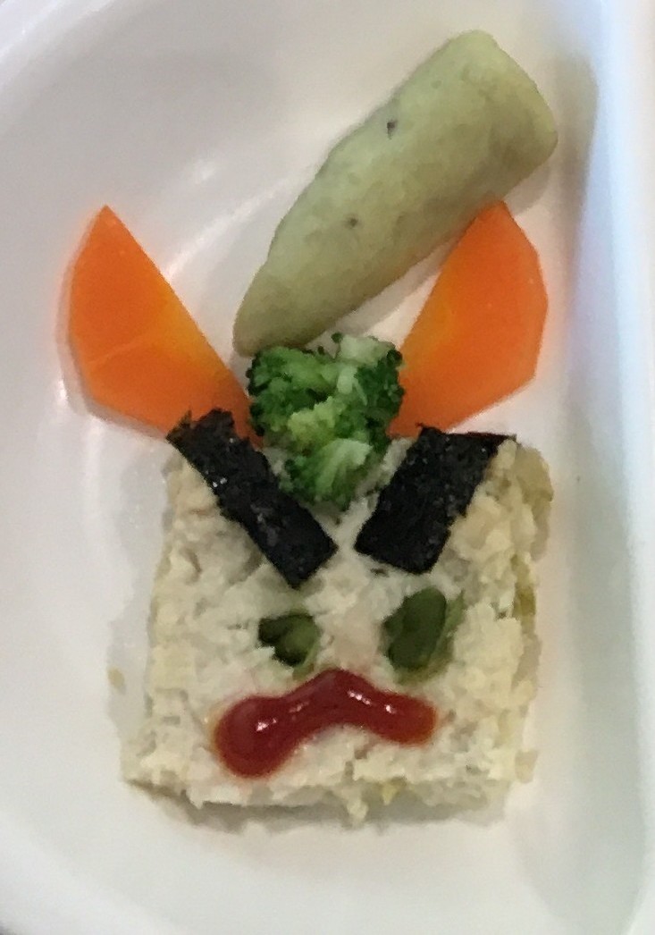 • 給食はおにさんハンバーグでした♪