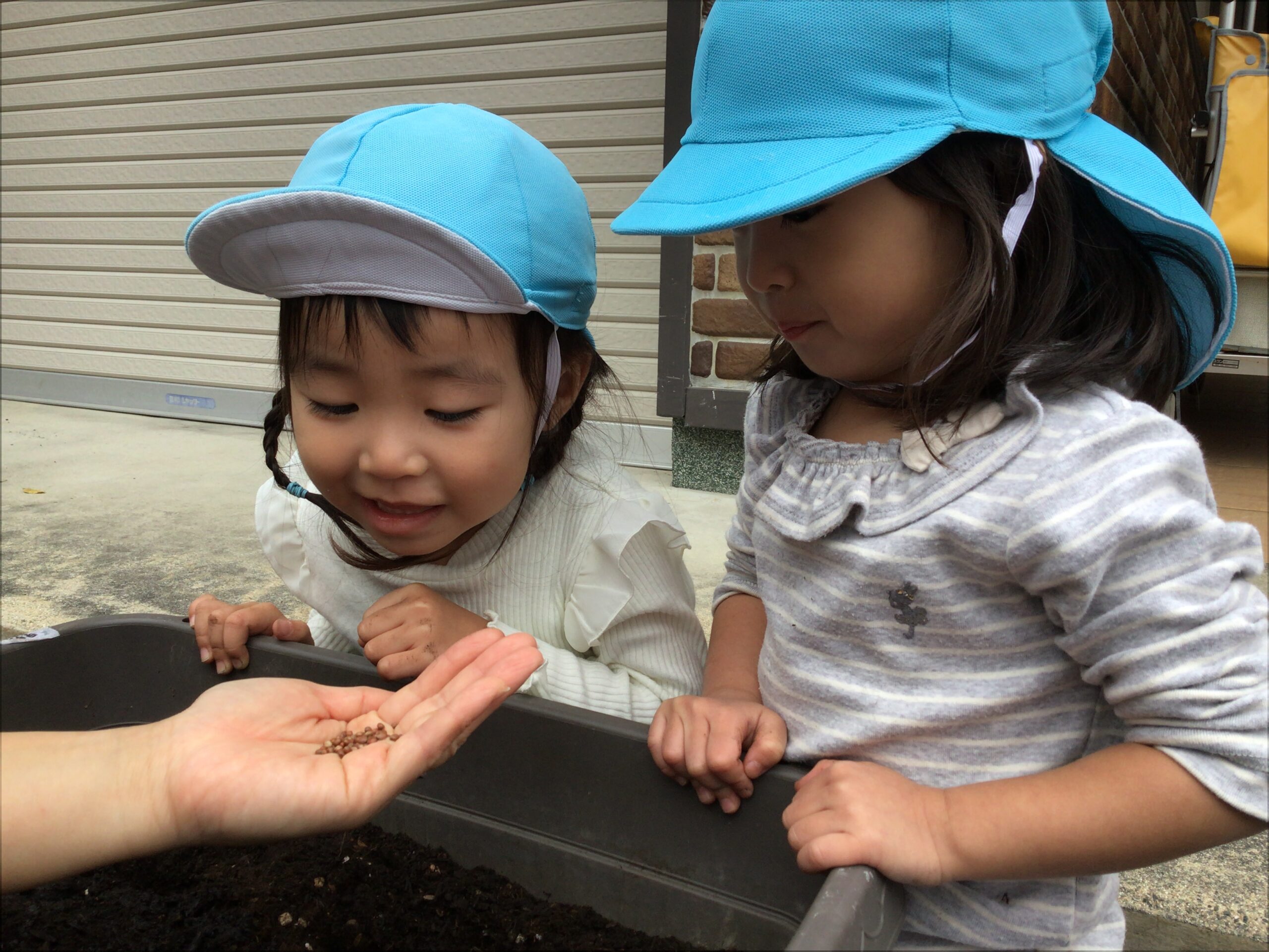 どんなお花が咲くのか、楽しみにしている子どもたちです♡