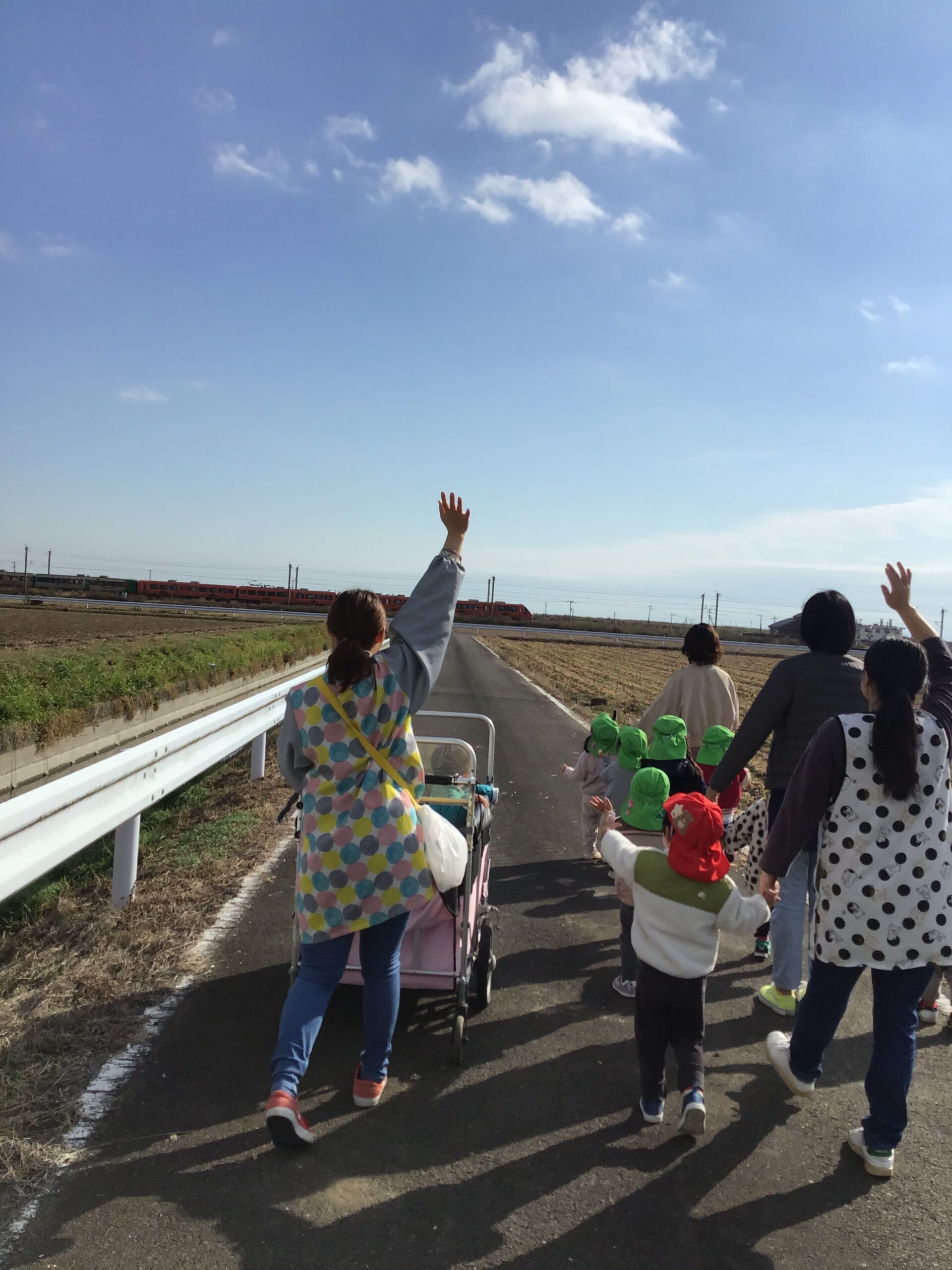 「でんしゃさんバイバーイ」とみんなで手を振ってお見送り♪ -