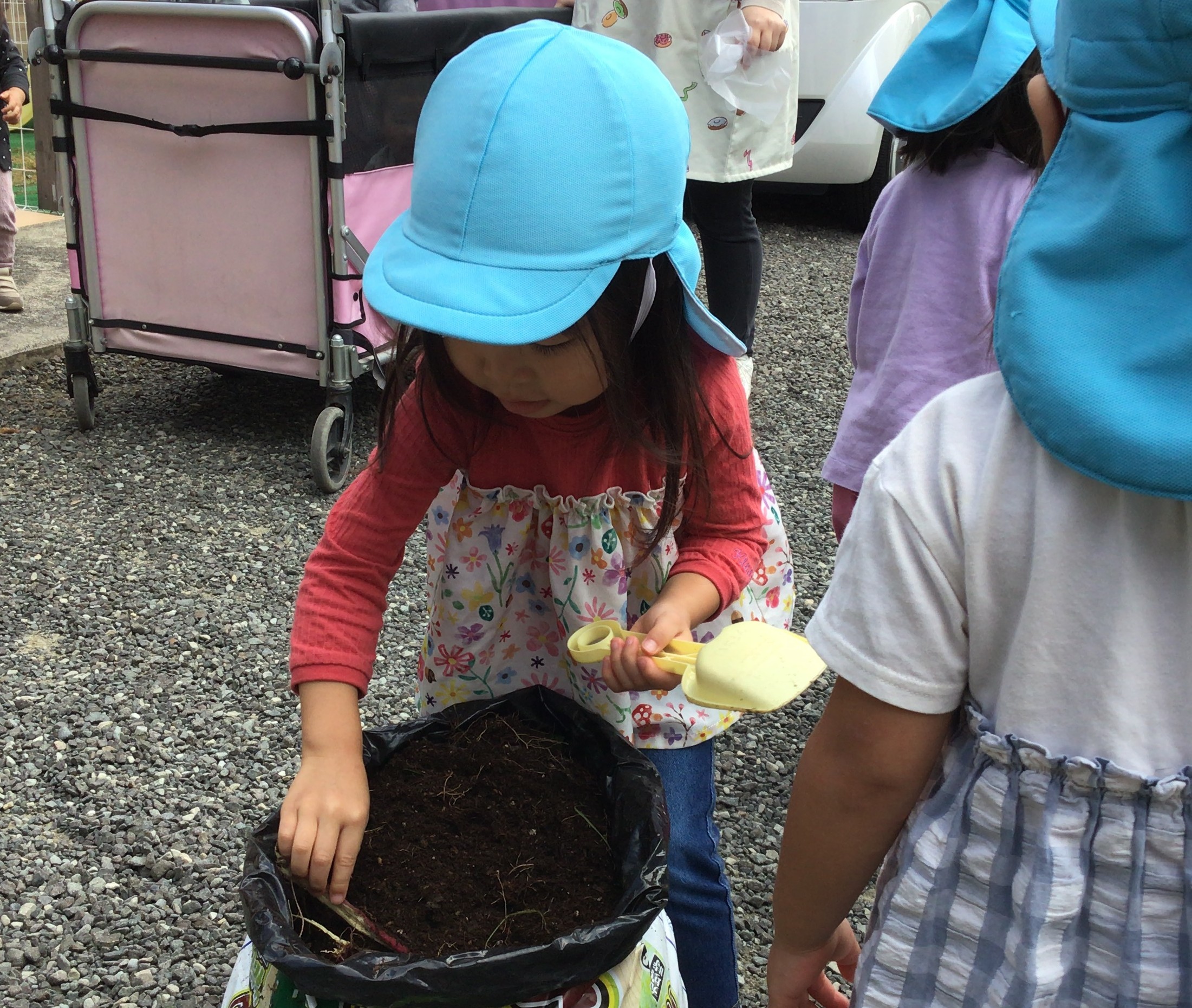 5月にサツマイモの苗さしをしました!今年度は、袋での栽培にチャレンジ☆