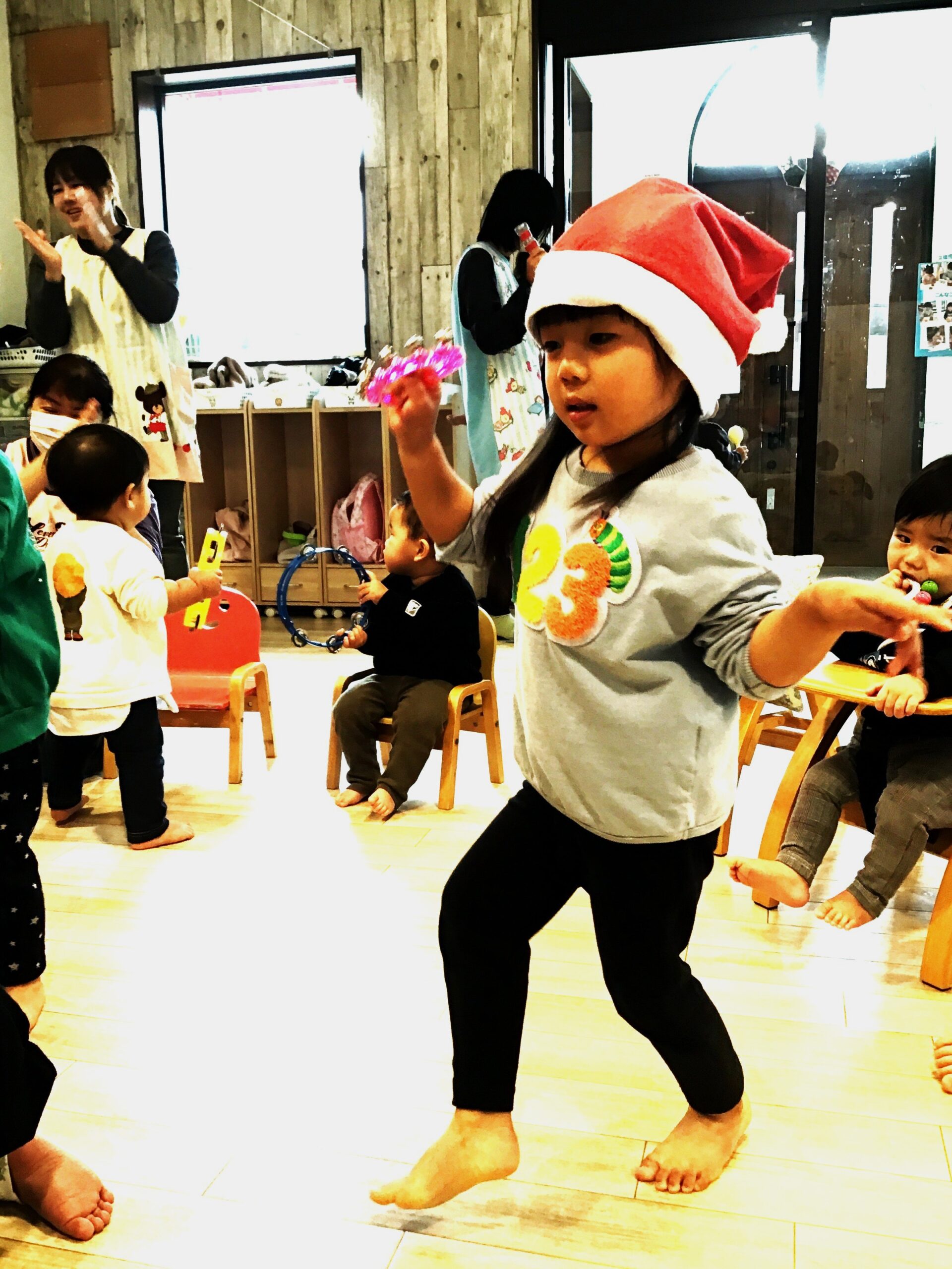 「あわてんぼうのサンタクロース クリスマス前にやってきた~♪」思い思いの動きで踊る子ども達♪