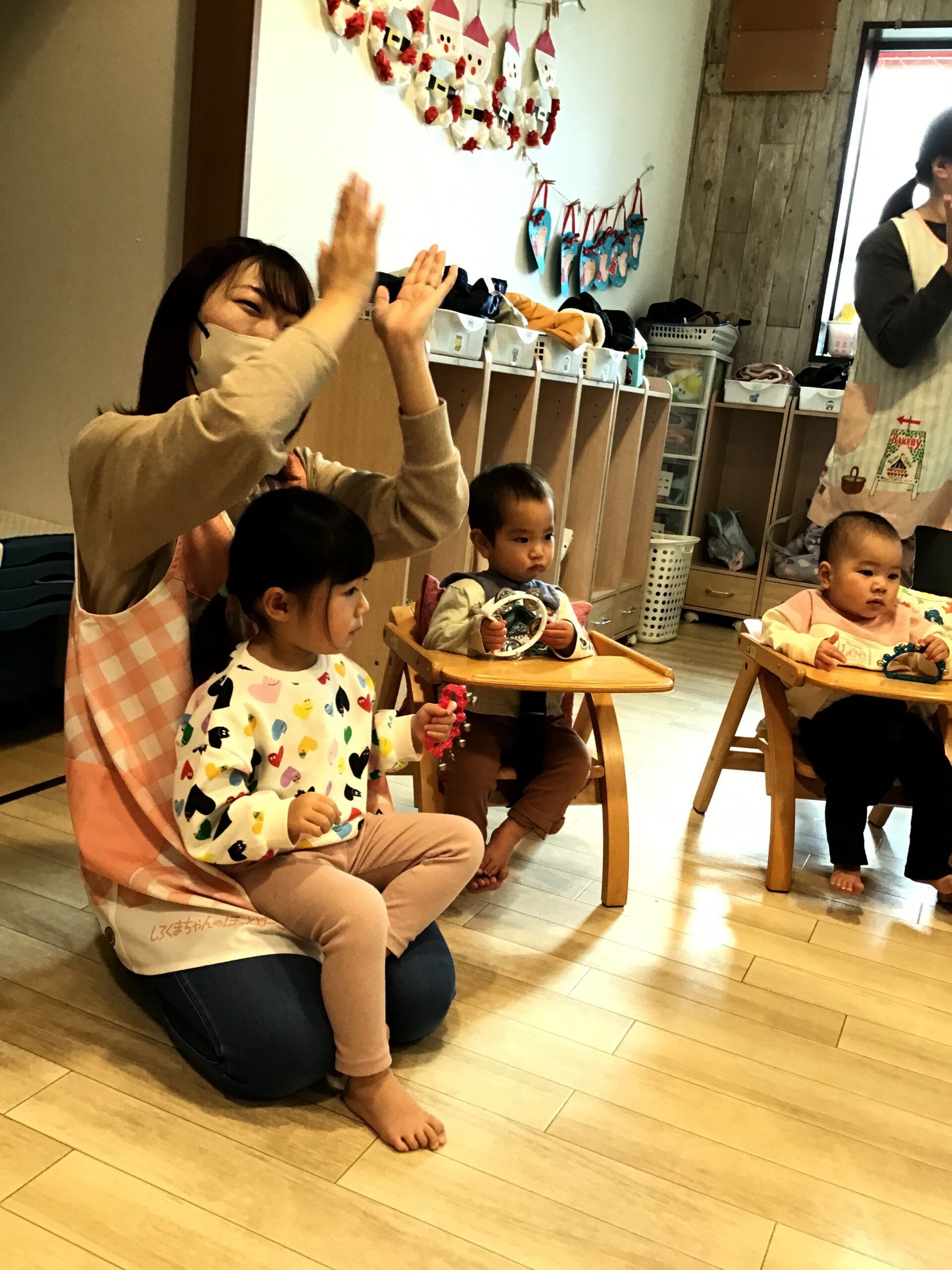 みんなで歌に合わせてタンバリンや鈴を鳴らして演奏を楽しみました♪