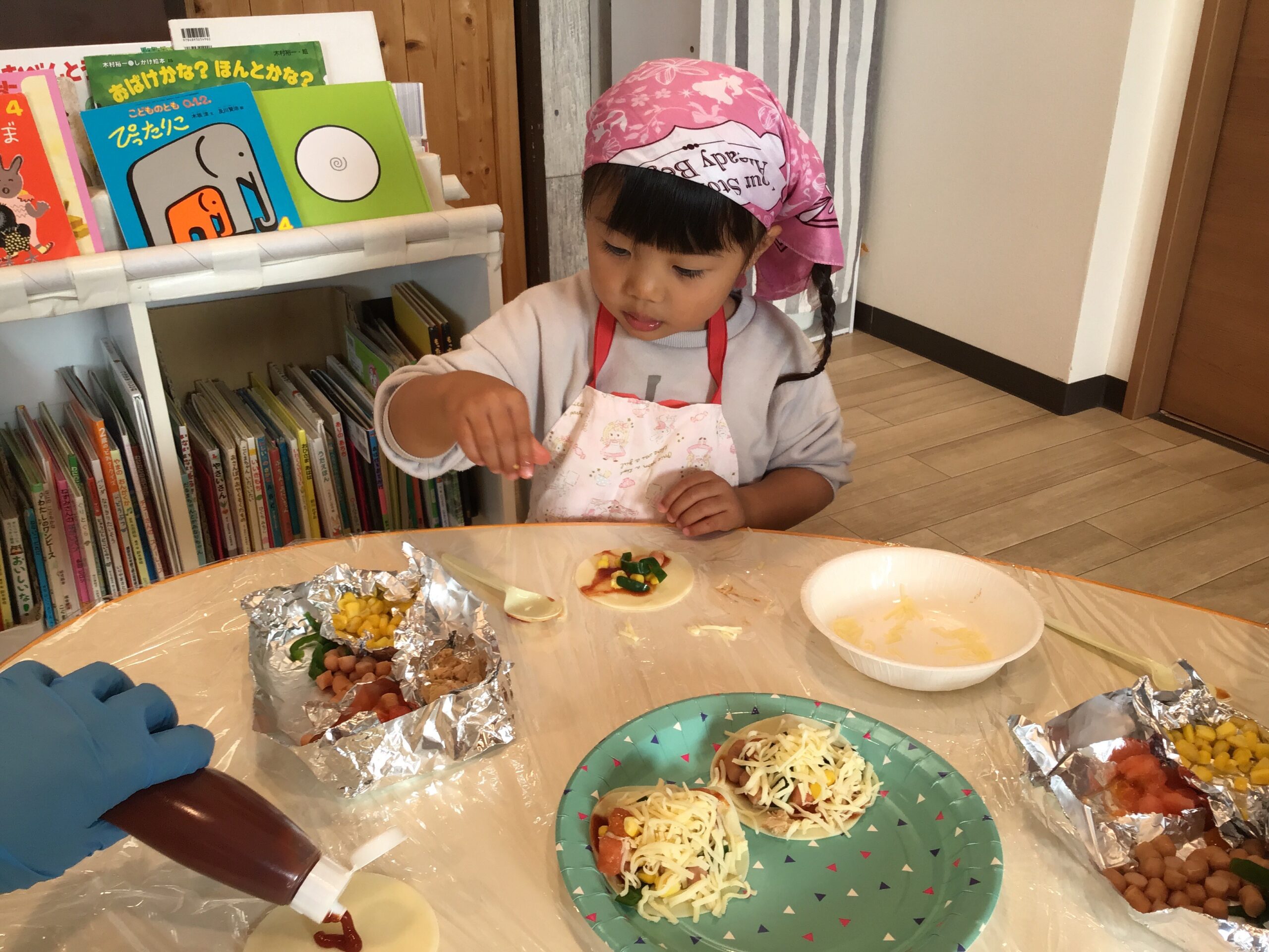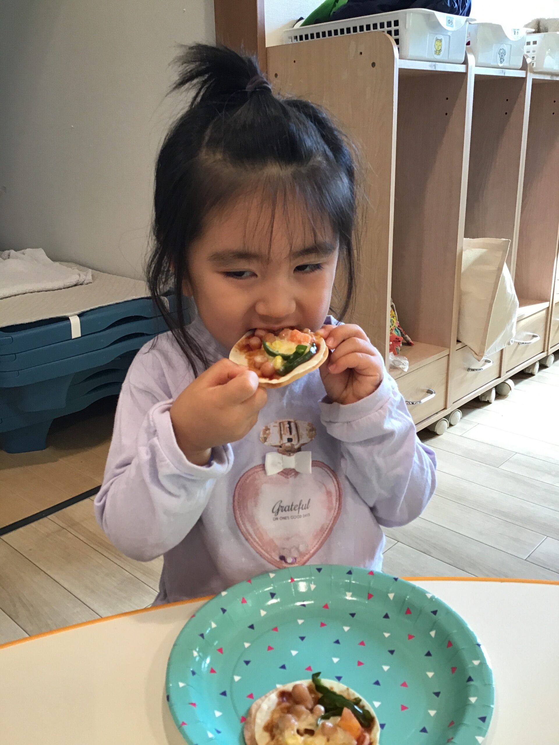 好きな具材を選んでトッピング★ ピーマンやトマトも自分で選んでのせていました!!