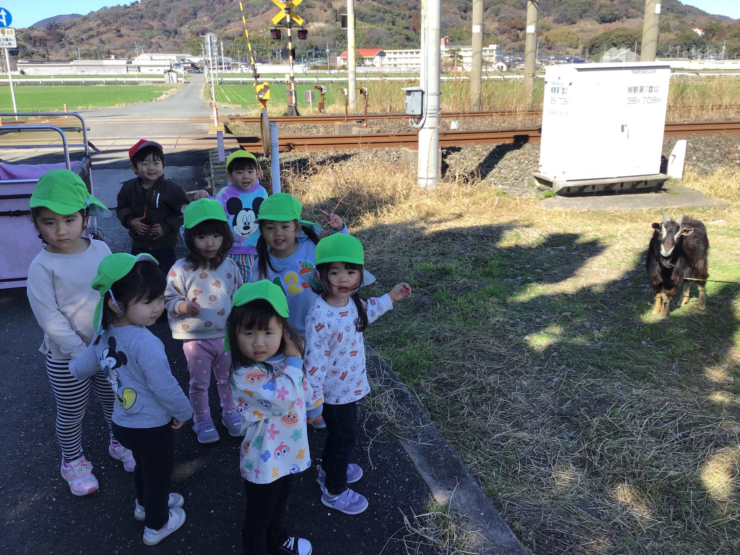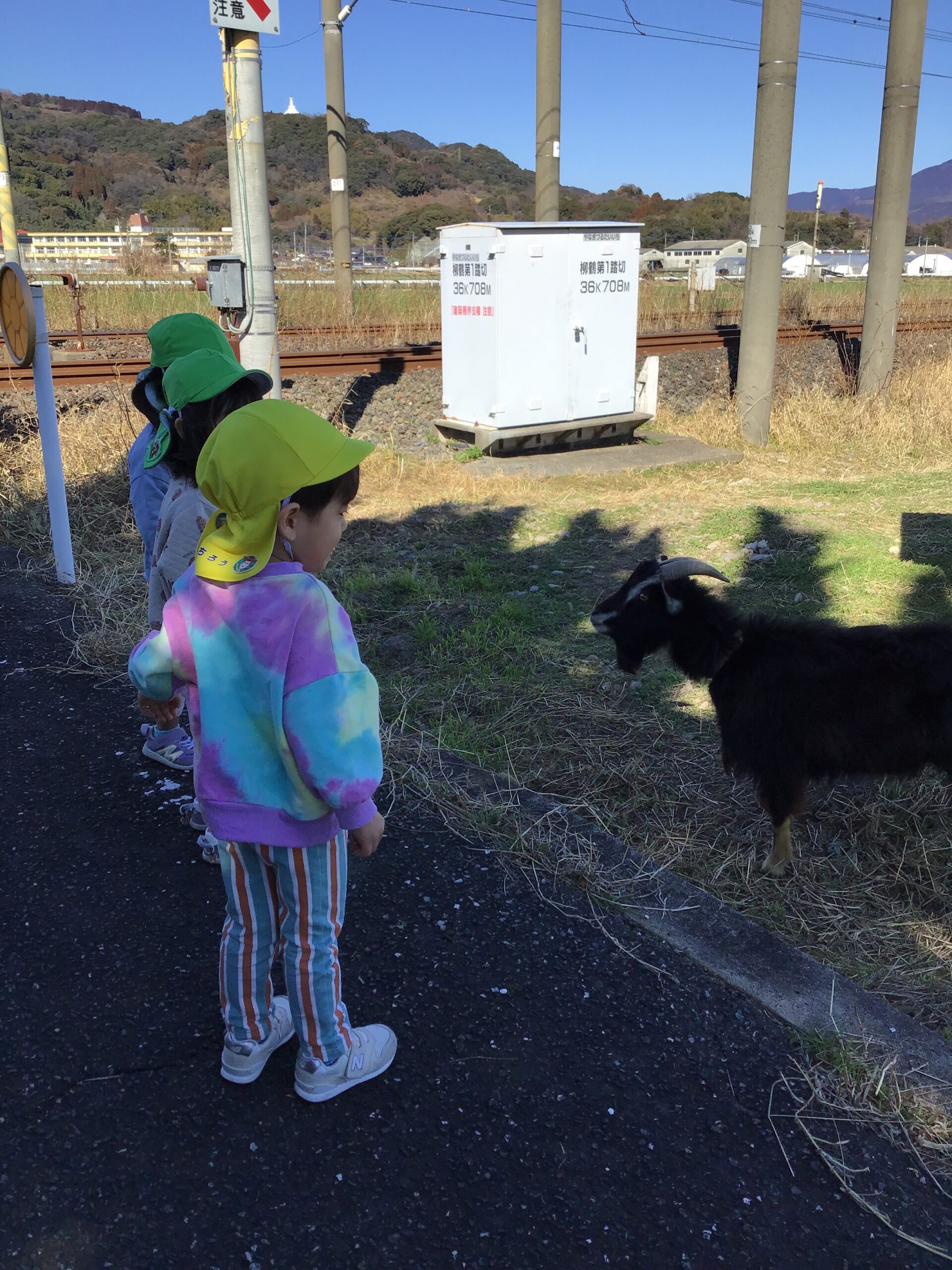 ぽかぽか陽気の中、電車やヤギさんに会えて、先生も子ども達もルンルンなお散歩でした(*^_^*)