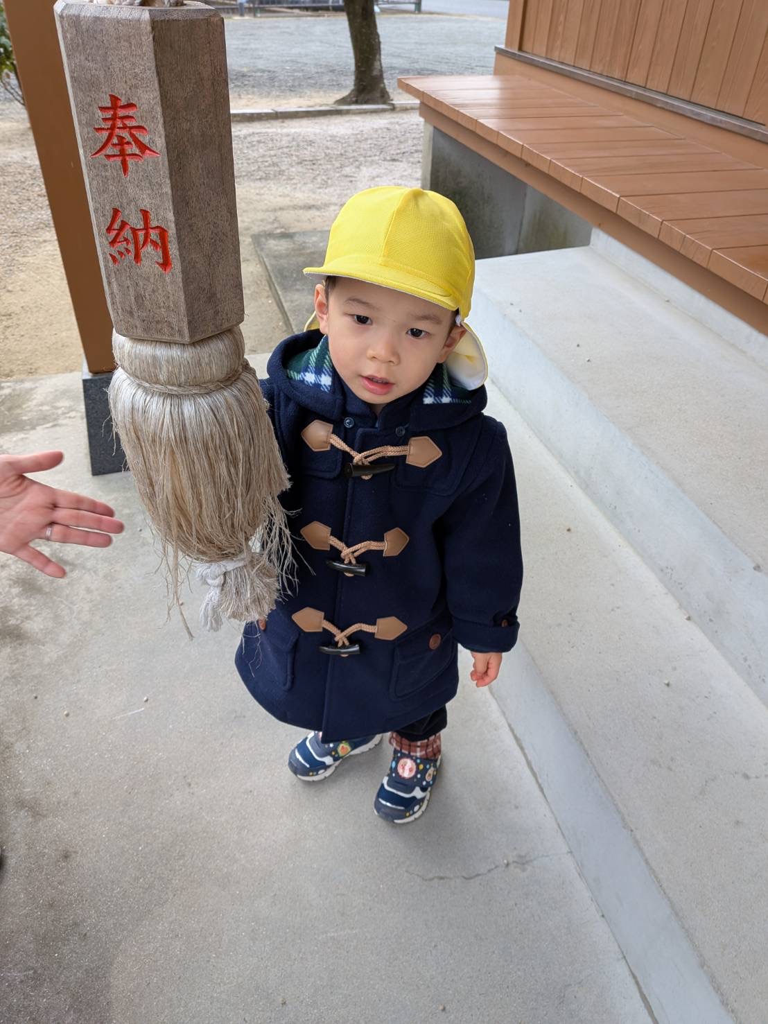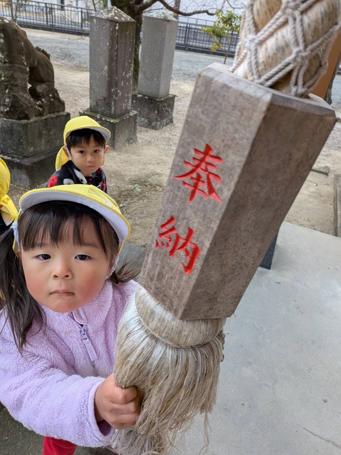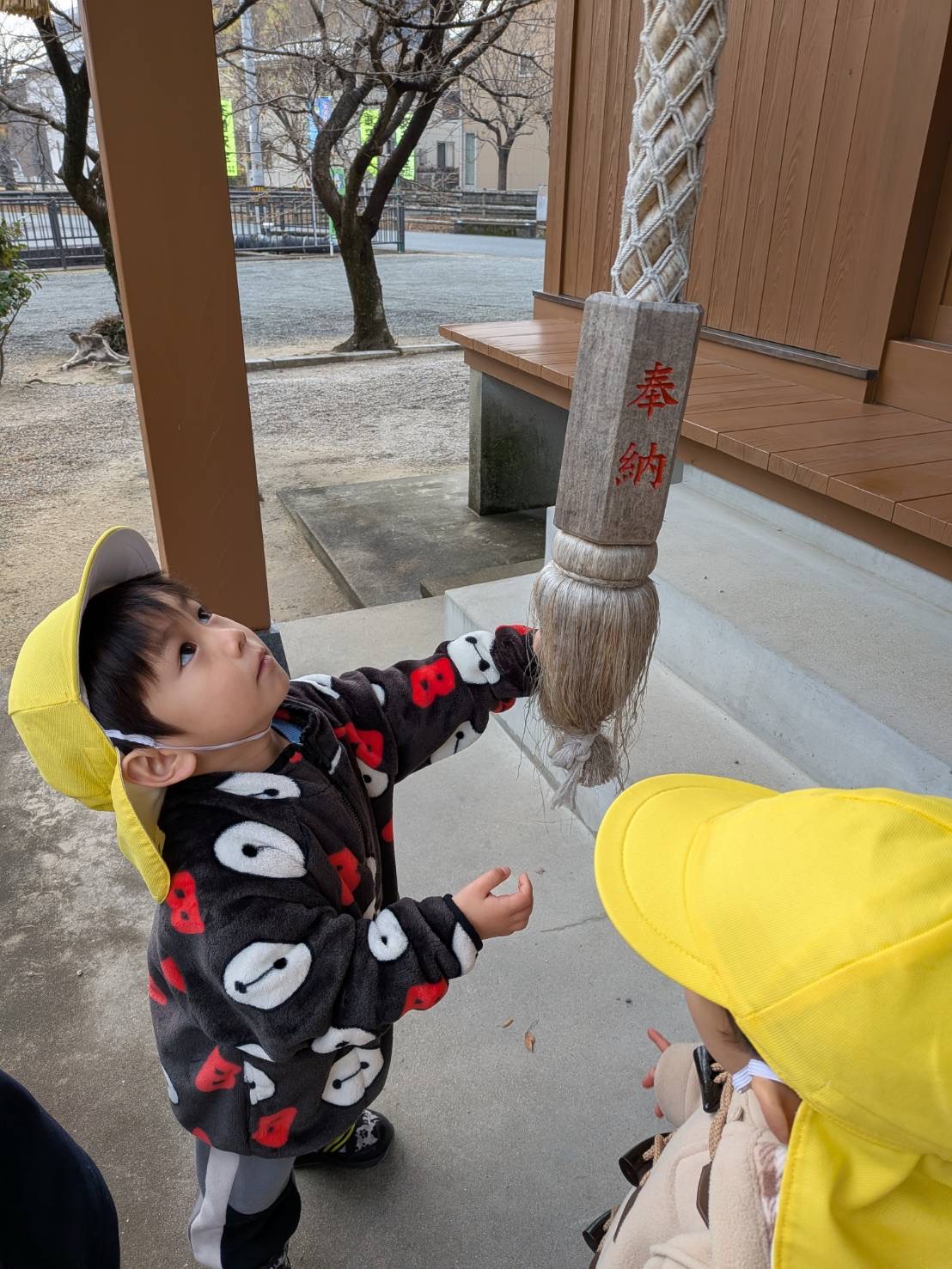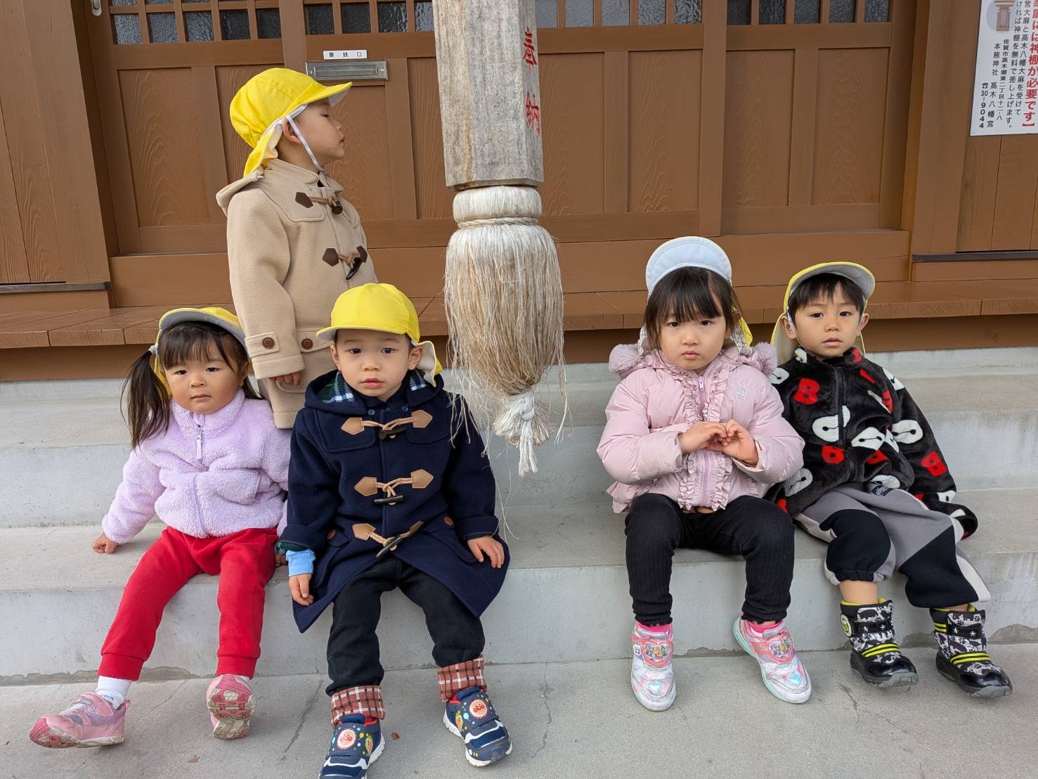 • 2歳児さんは、近くの神社に初詣に行きました。
